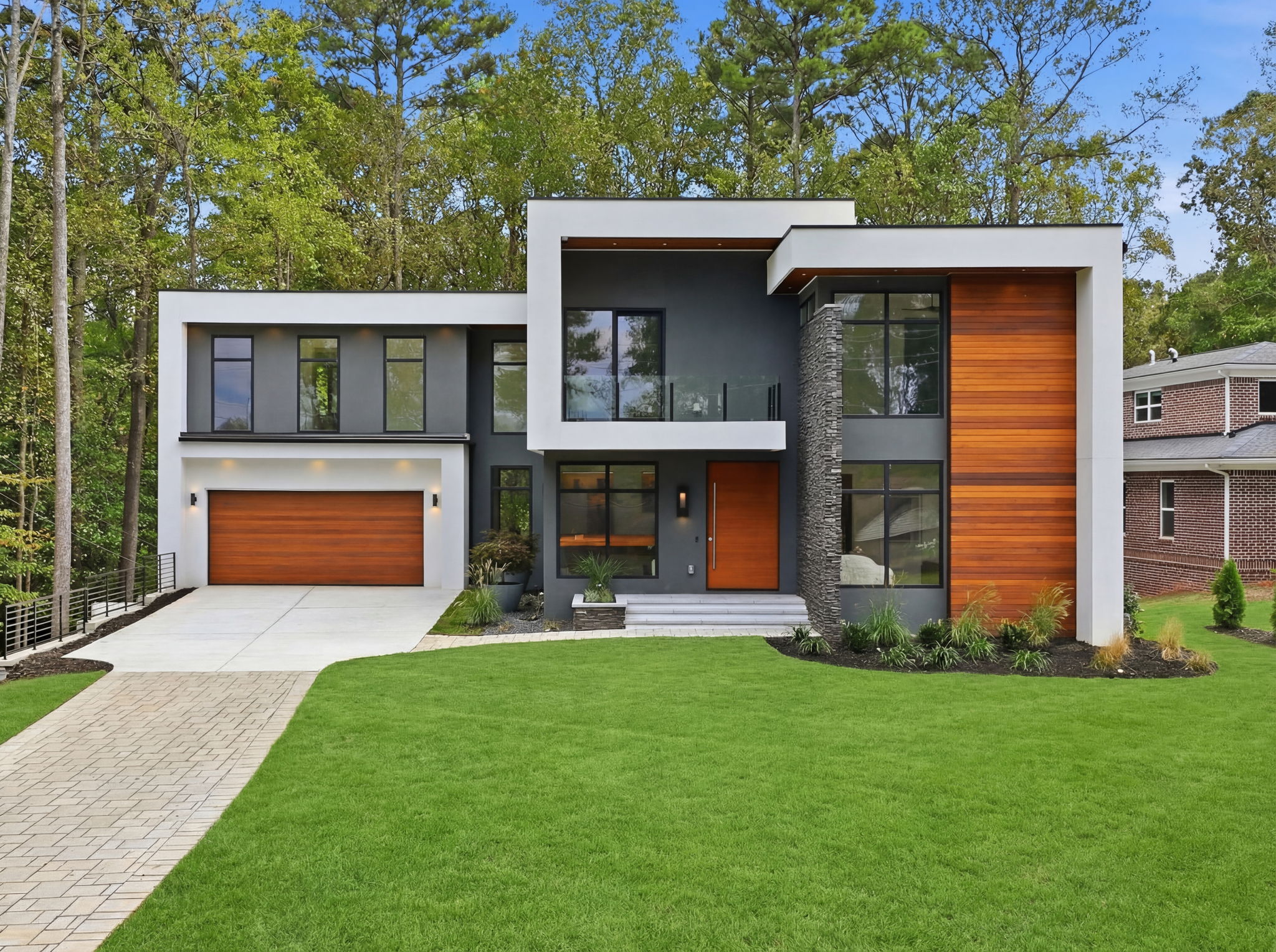 A modern masterpiece redefining luxury living set on nearly an acre of land in one of Atlanta's most desirable locations. Newly constructed modern estate offers the perfect balance of architectural sophistication and everyday livability. Designed with uncompromising craftsmanship, it showcases an extraordinary collection of imported finishes that elevate every space. The dramatic entry begins with a custom solid wood pivot door that opens into soaring interiors flooded with natural light from expansive walls of glass. A floating staircase with sleek cable railing and a fireplace surrounded by a porcelain slab creates a bold yet elegant focal point. At the heart of the home, the chef's kitchen features Wolf and Sub-Zero appliances, European German cabinetry, built in custom table, a quartz island with integrated lighting, and a concealed walk-in pantry. A wine bar with Taj Mahal quartz and Italian fluted marble backsplash provides the perfect setting for entertaining. Luxury details continue with Brazilian Ipe wood, Italian tile, and custom carpentry throughout. Each bedroom is outfitted with a custom closet, while spa-like bathrooms feature floating vanities, rain shower systems, and imported European finishes. The primary suite is a true retreat with a private balcony, spa-inspired bath, and his-and-her custom closets, while an additional balcony extends from the office for a quiet escape. The finished lower level is designed for entertaining with a second full kitchen, guest suite, and a home theater hidden behind a secret door with custom lighting. Blending indoor and outdoor living, a covered porch with oversized sliding picture window door, frames the wooded exquisite backyard views, offering both privacy and tranquility. All within walking distance to Emory University, CDC and Thompson Park, this modern gem sets a new standard for contemporary luxury in Atlanta.